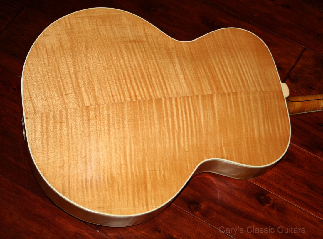 1947 D’Angelico Tenor archtop guitar, Blonde finish, Very rare model, Attractive Flamed Maple, 17 inches wide at the lower bout, Replaced pickguard, Nearly invisible rim repair, Bound Ebony fingerboard with Pearl Block inlays, Carved Ebony bridge, Custom ordered, Lovely sounding, EC, Original hard case