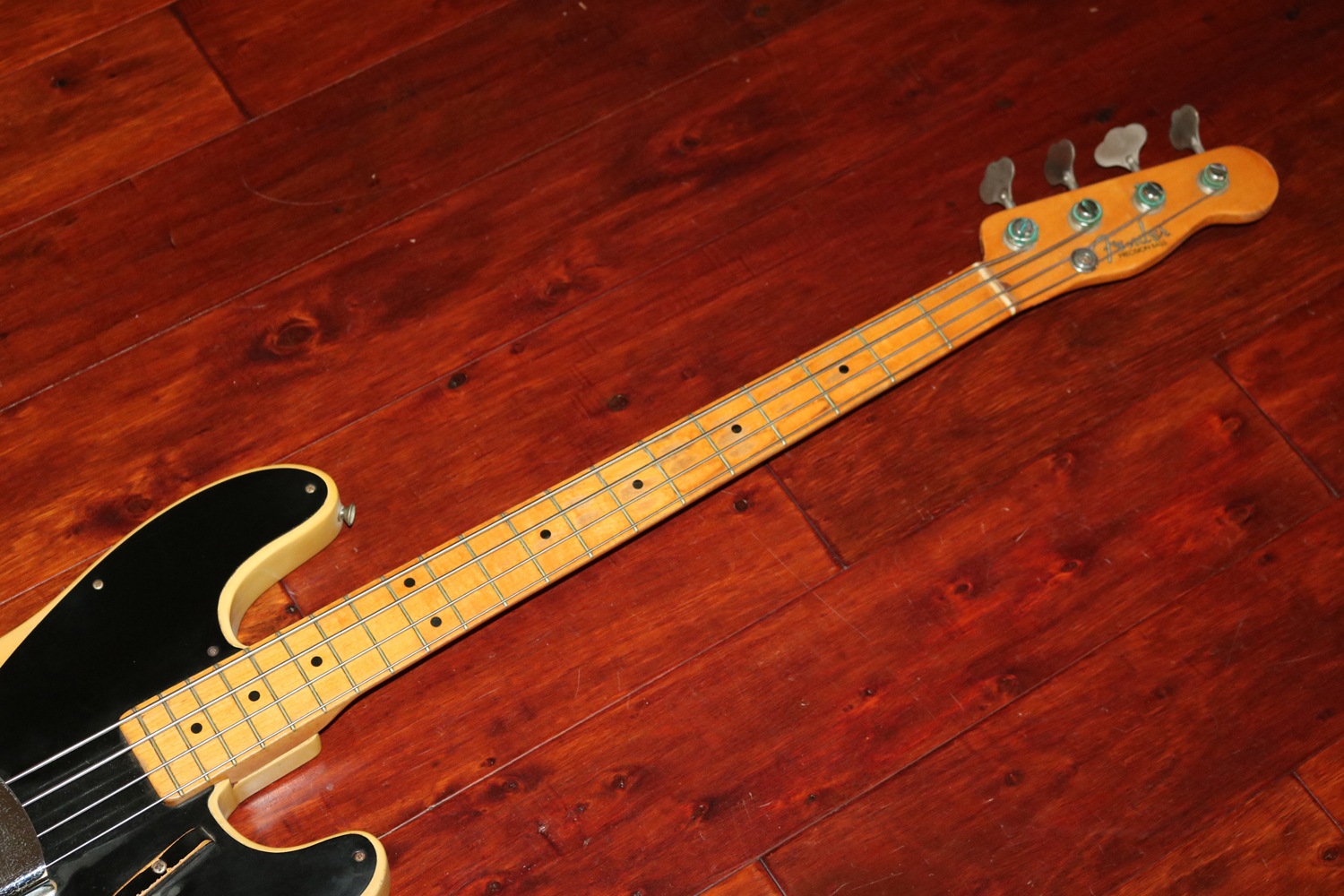 1952 Fender Precision Bass, Blonde, Black Guard, Slab body, Maple neck, Both covers, All original, Fabulous instrument, Excellent condition, Rare original gig bag