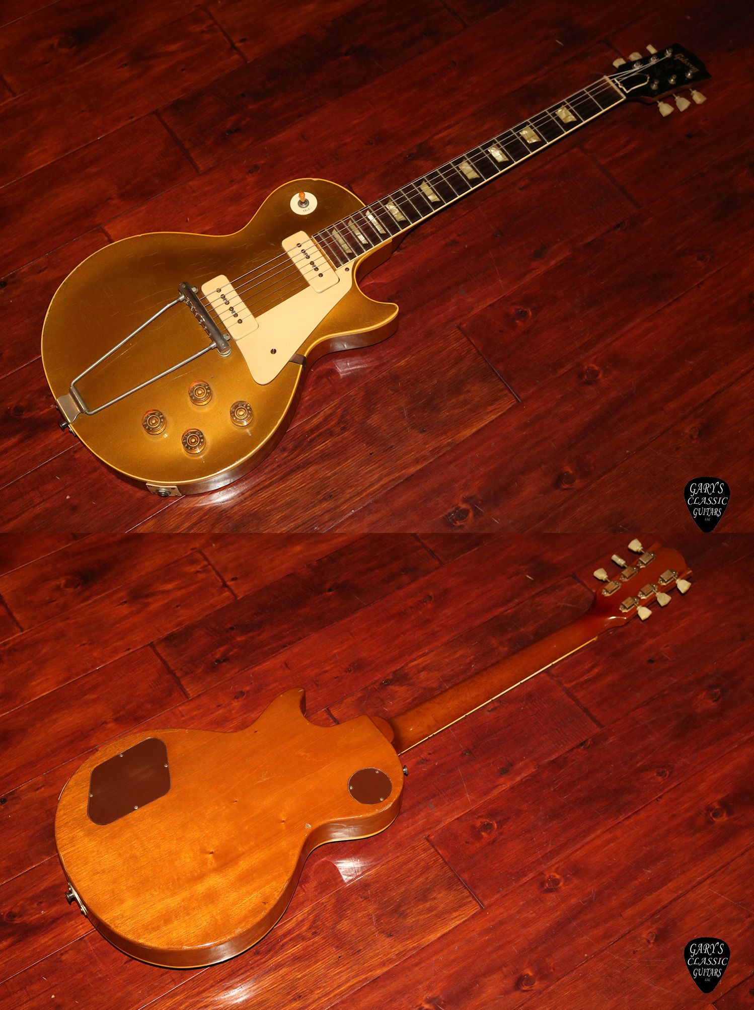 1952 Gibson Les Paul Goldtop, One family owned guitar, Two powerful P-90’s, Older solid pro headstock repair, Light one at 8 lbs 7 oz, Some fading around the switch area, Patent Pending tailpiece, Great feeling neck, Sets up with nice low action, Lively player, Beautiful example of this legendary instrument, VG++, Nice original Brown hard case