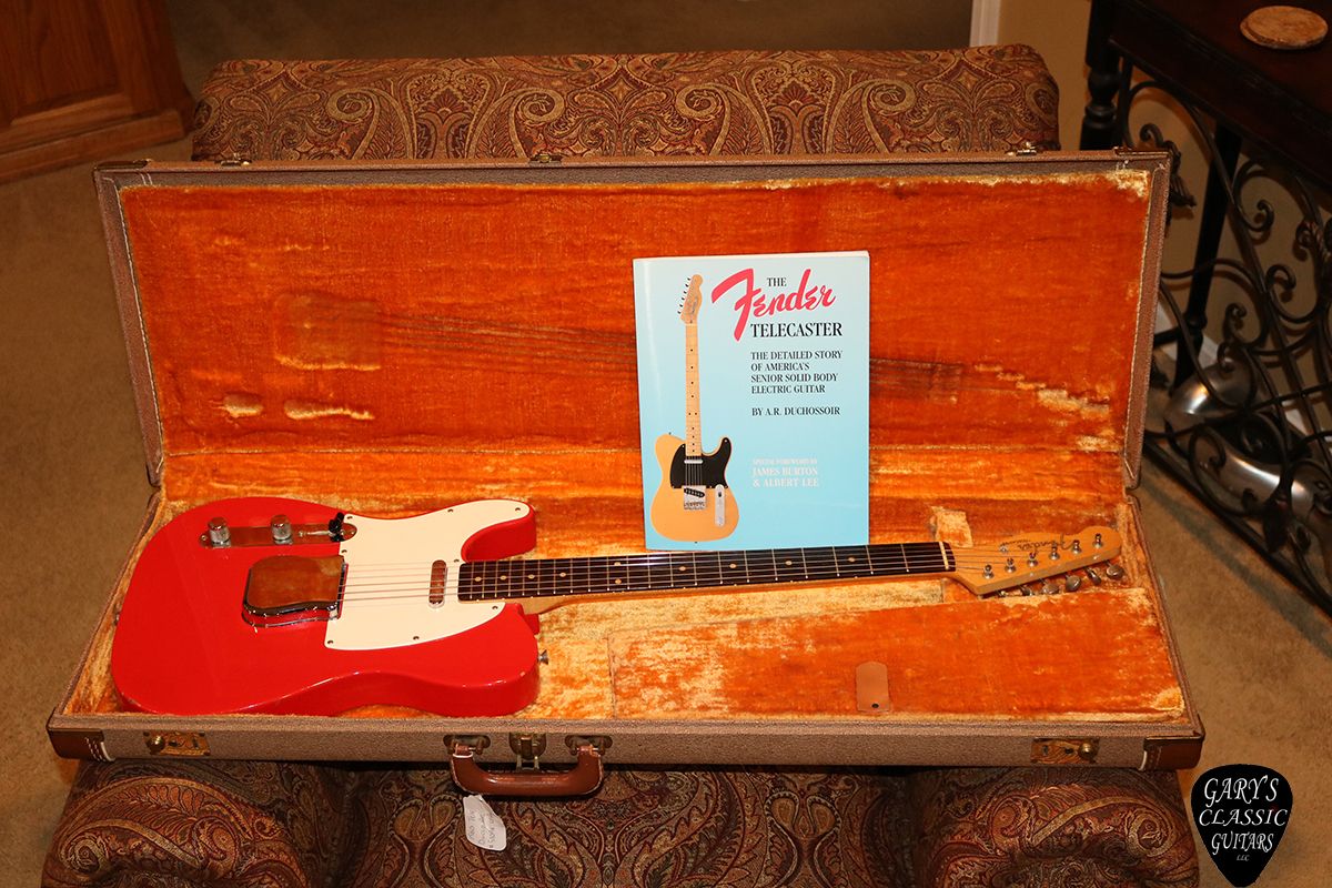 1960 Fender Slab Board Telecaster, Super Rare Original Duco Red finish, Left Handed model, This beauty is featured in “The Fender Telecaster Book” page 38, Bridge cover, Single ply white guard, Light weight, Perfect collector’s condition, Bedazzling Telecaster that is near museum quality, One of the finest and coolest Telecaster guitars ever found!, Original strap, Copy of the book, EC+, Clean Original Brown Hard Case
