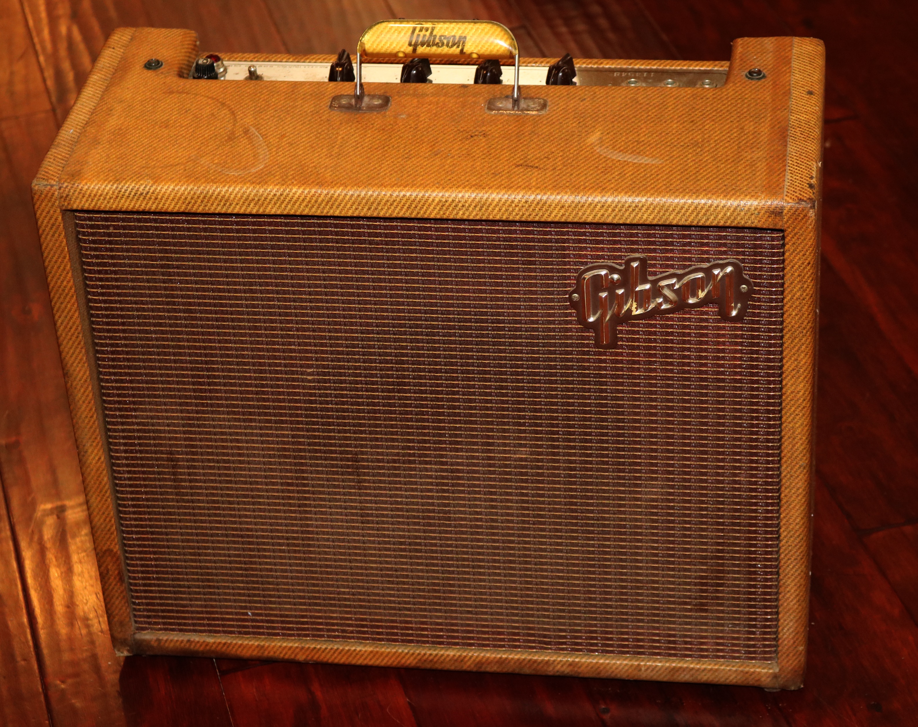 1960 Gibson Explorer GA-18 Amplifier, Tweed, Jensen P-10R Speaker, Foot Switch, Powers up but hums, Sold "as is" needing to be serviced, Rare & cool model