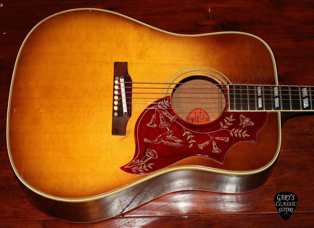 1960 Gibson Hummingbird, Faded Cherry Sunburst, First year of production, Gold Kluson tuners, Adjustable bridge with White ceramic insert, 1 & 11/16 inches wide at the nut, Superb instrument, EC, NHSC, SOLD