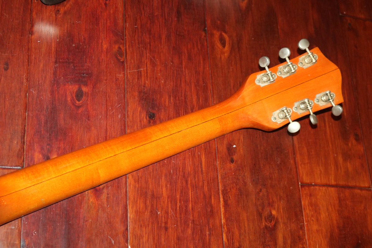 1961 Gretsch 6120, Western Orange, Ebony fingerboard with Neo Classical inlays, Chet Atkins Signpost pickguard, Two Filtertrons, Bigsby, Fine guitar! VG++, Original hard cowboy case,