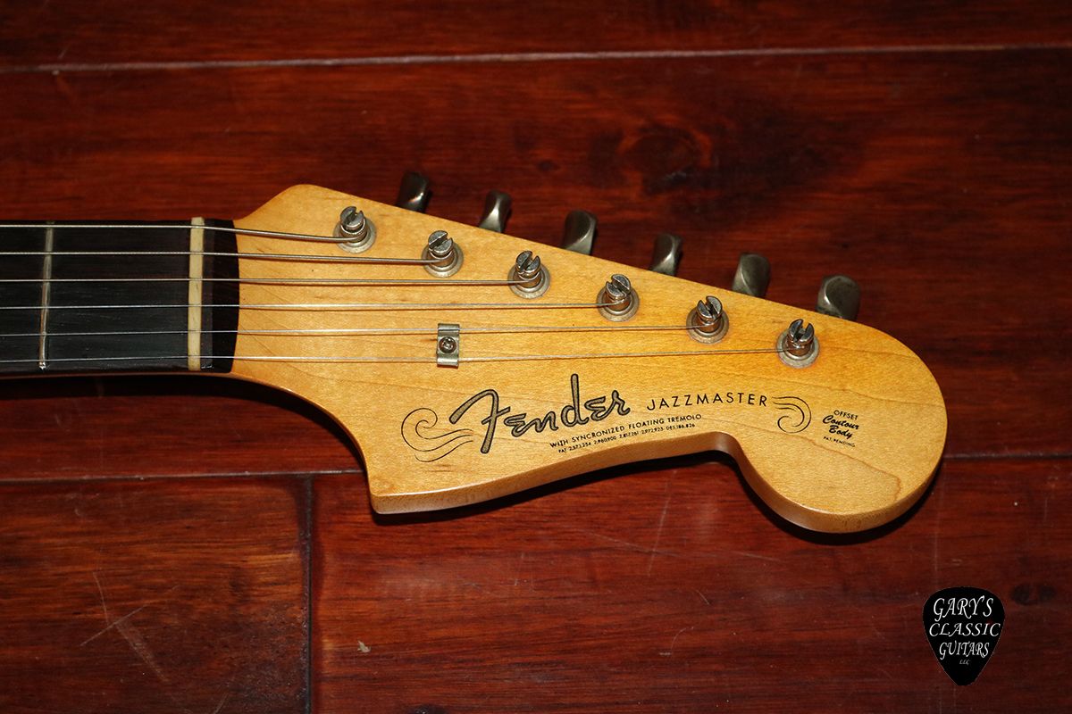 1962 Fender Jazzmaster, Slab Board, Clay dots, Spaghetti logo, Sunburst finish, Tortoise guard, Floating Tremolo, Bridge cover, Beautiful sought after guitar EC, Original Brown Hard case