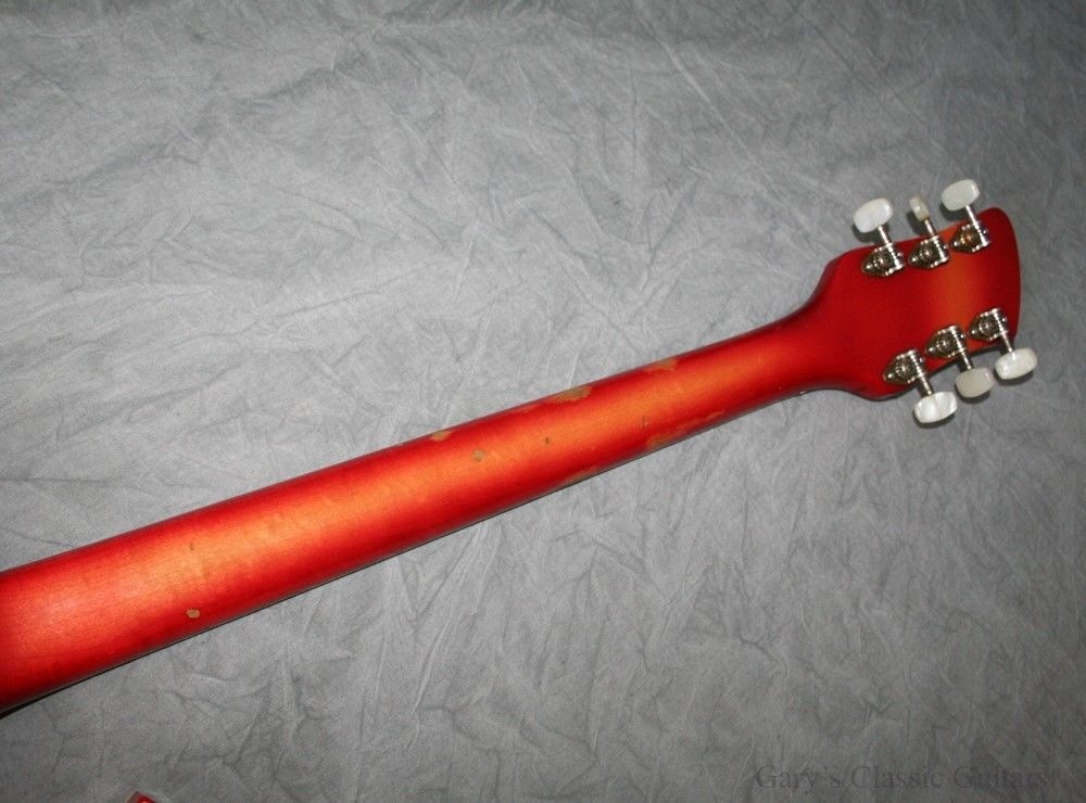1963 Rickenbacker 625, Fireglo, Nice early example with Large Pearl inlays, Patent Pending Tailpiece, Original pickups & electronics, Updated lower pickguard, Beautiful instrument, VG++, Clean original Silver hard shell case