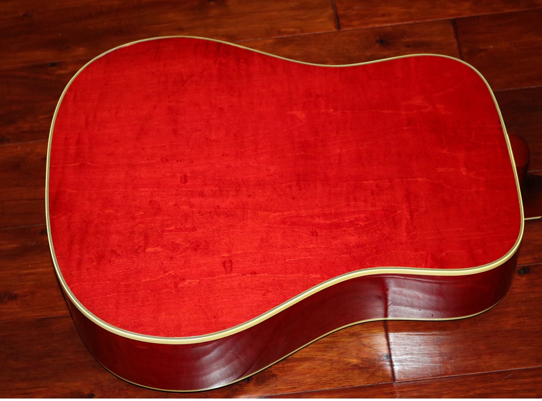 1964 Gibson Dove, Vibrant Cherry Sunburst finish, Near new condition with tags, Brazilian Rosewood bridge with Nickel Tune-O-matic insert, Double parallelogram fingerboard inlays, Attractive pickguard inlaid with Pearl, Beautiful sounding, Deluxe model, Wide at the nut, Stunning! Vintage Gibson hard shell case
