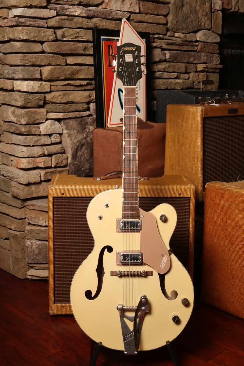 1964 Gretsch Double Anniversary, hard to find Jaguar Tan and Bamboo Ivory finish, Two Hilo'trons pickups, Clean consdition, Ready to play, Nice pro refret, Bigsby, Great instrument! Original hard case