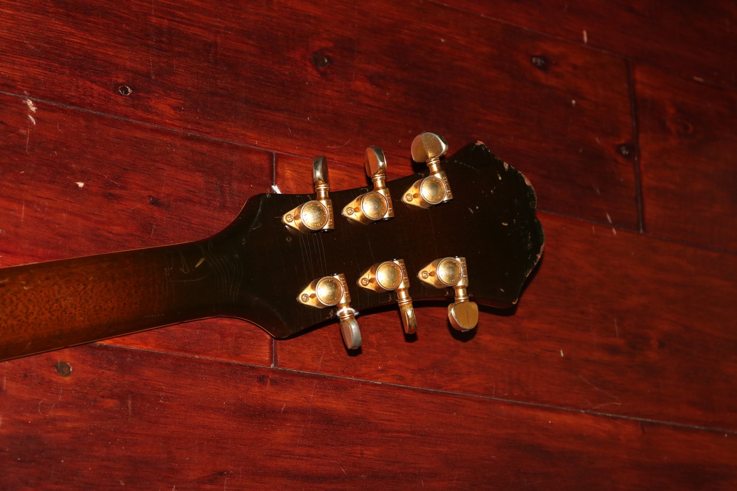 1965 Epiphone Sheraton, Sunburst, Top of the line model, Nice feeling neck,1 & 10/16 inches wide at the nut, Deluxe inlays, Gold Hardware, Two fabulous sounding mini Humbuckers, Hard to find model, Great instrument! VG++, Original hard case