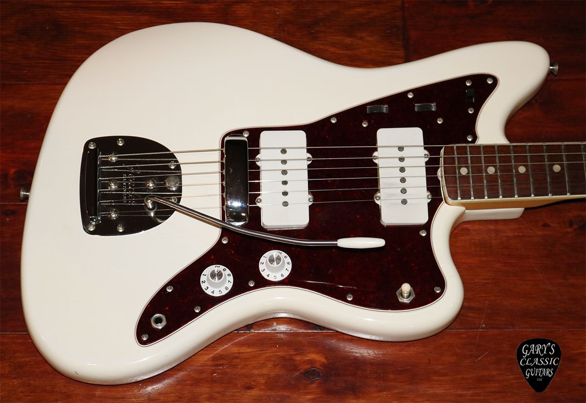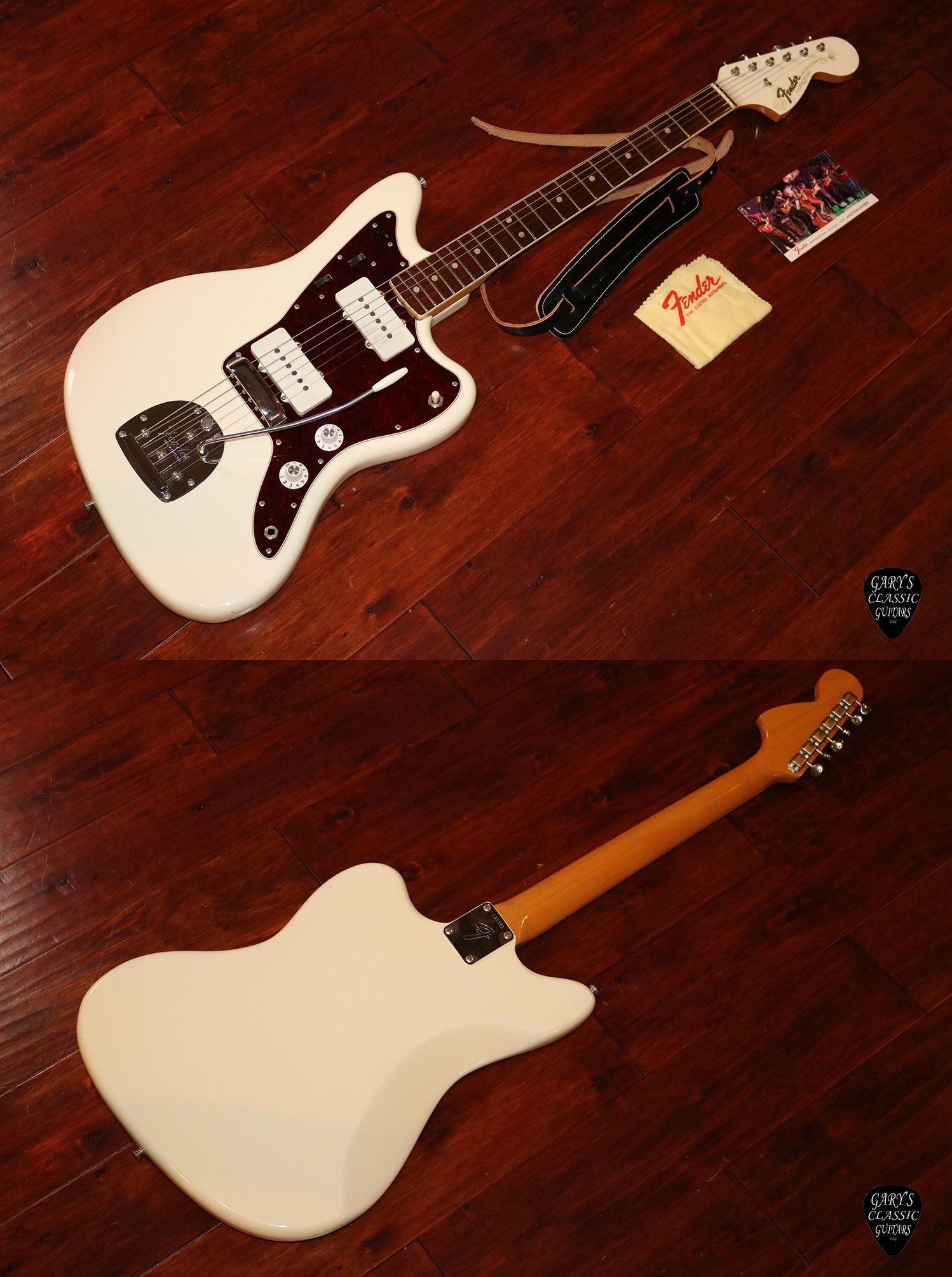 1966 Fender Jazzmaster, Pristine Olympic White finish with matching headstock, Near mint, One owner guitar that was played only a handful of times, Bound fingerboard with dots, Floating tremolo, Bridge cover, Likely the finest example around with hang tag, Fender Leather strap and polish cloth, EC++, Clean original hard case, $18,900