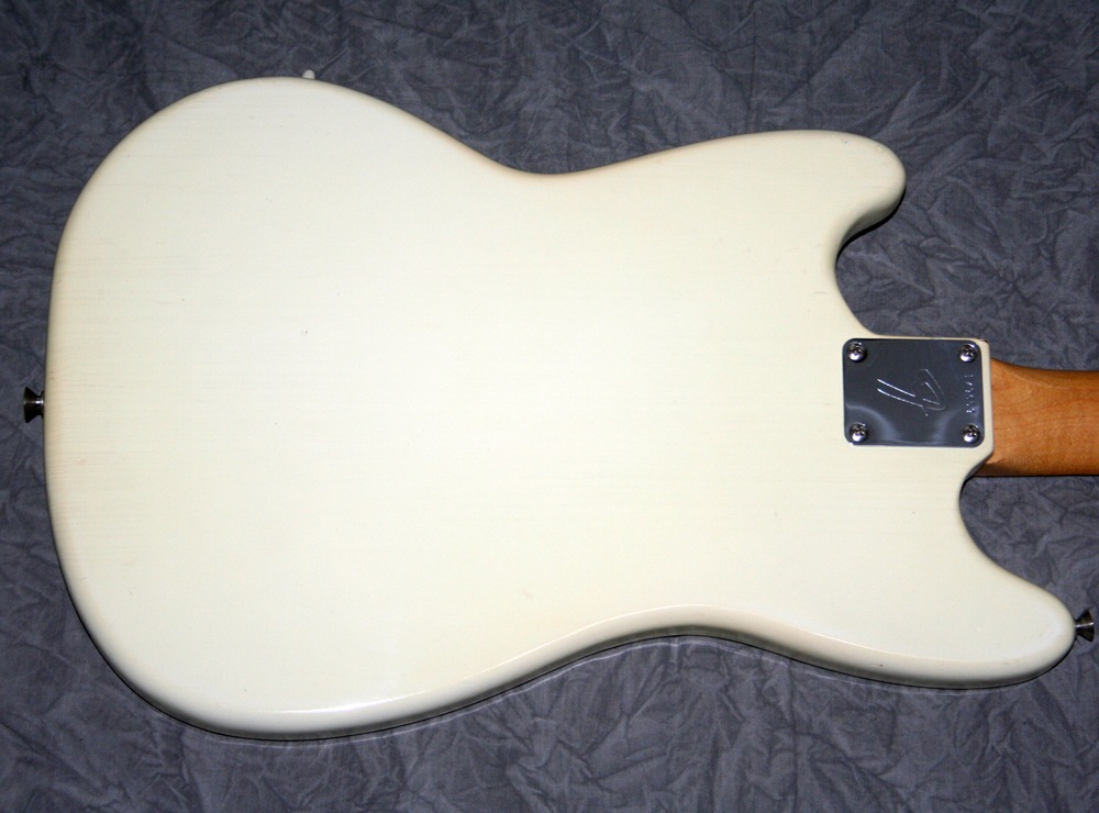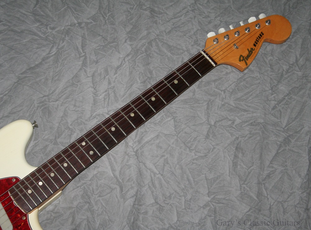 1966 Fender Mustang, White, Tortoise guard, Rosewood fingerboard, Dynamic Tremolo, Low action, Very fine example!