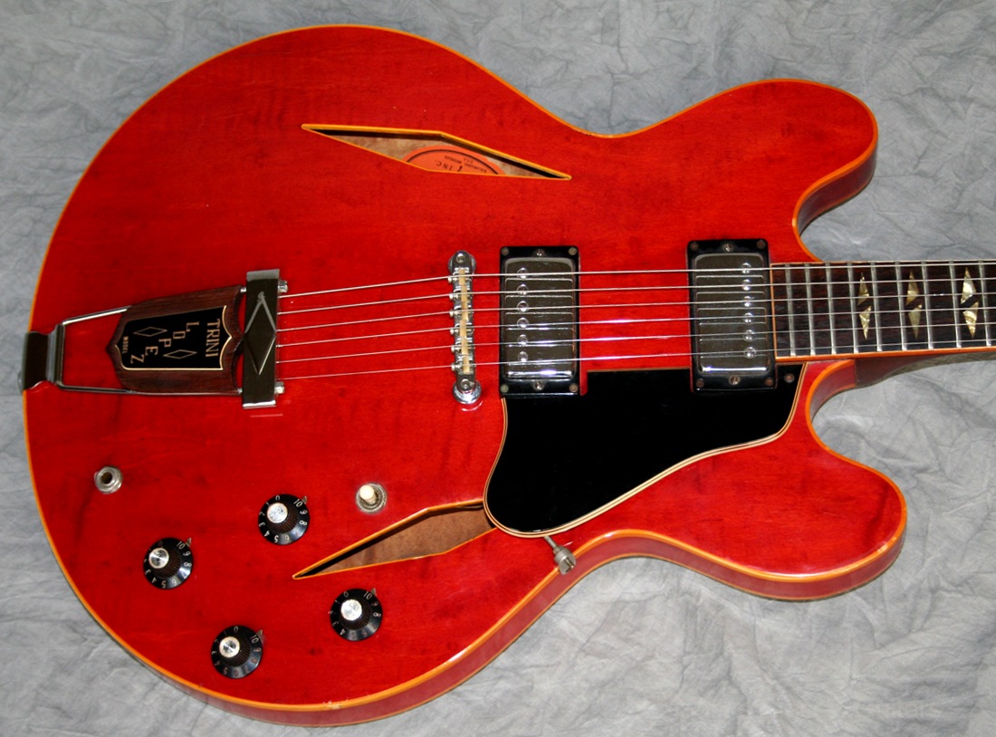 1968 Gibson Trini Lopez Standard, Cherry red, Firebird style headstock, Two Humbucking pickups, Signature name plaque, Split Diamond inlays, Great low action, Attractive instrument, VG++, NHSC,