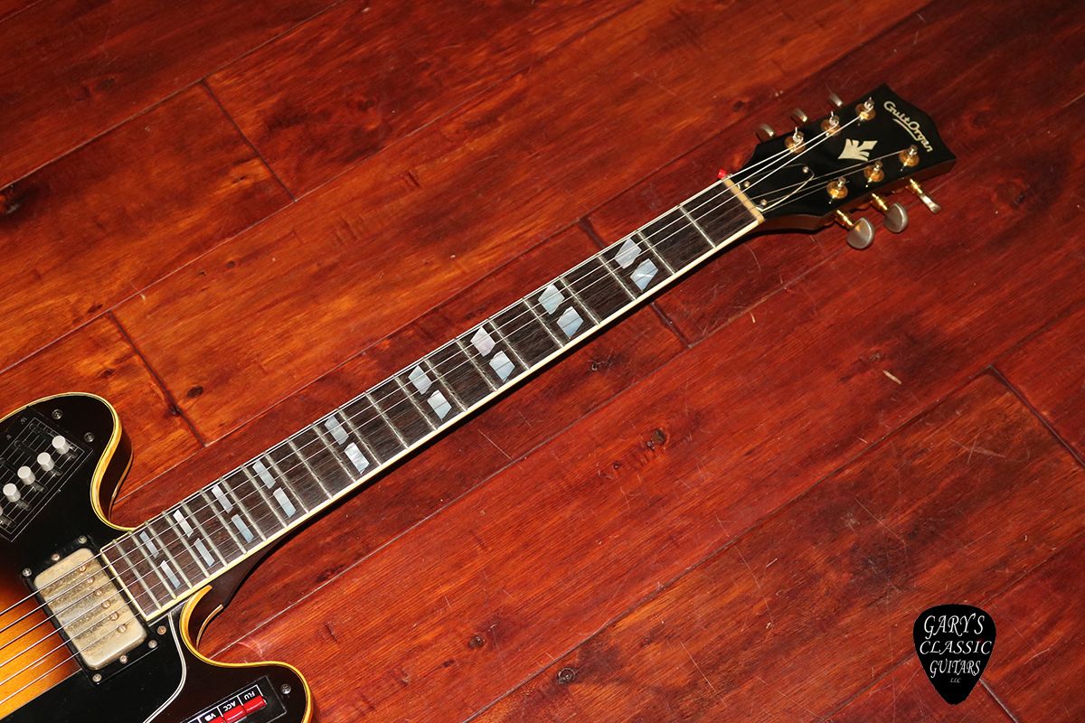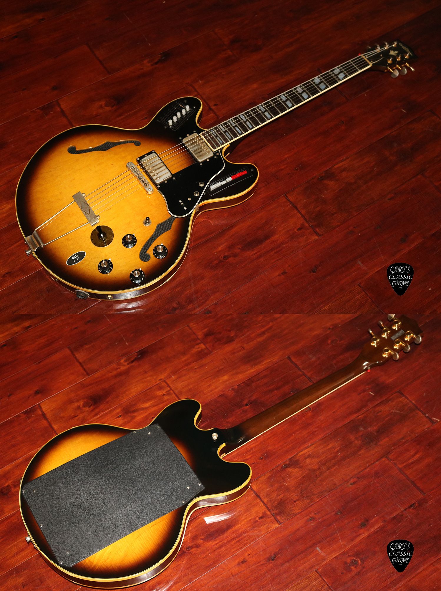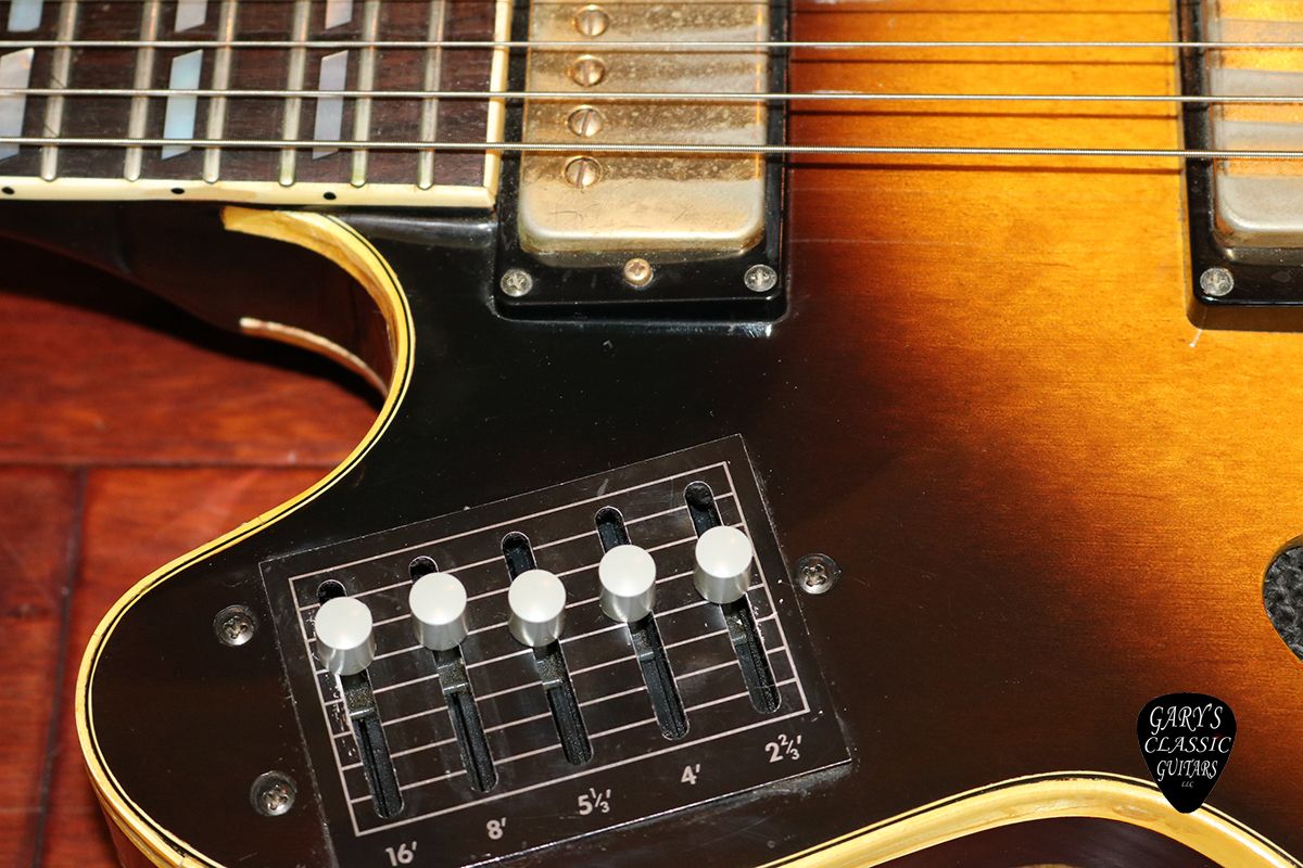 1970’s MCI Guitorgan 345 Copy, Beautiful Sunburst Finish, Includes its foot controller, This unusual guitar was created by Bob Murrell and Musiconics International (MCI) of Waco, Texas, It uses triggers on the frets to play organ sounds, Needs an electronical tune up but the normal guitar signal works , Some of the binding has shrunken and has some hairlines, Would look super cool on display with all the button and oddities that this early guitar synth has to offer
