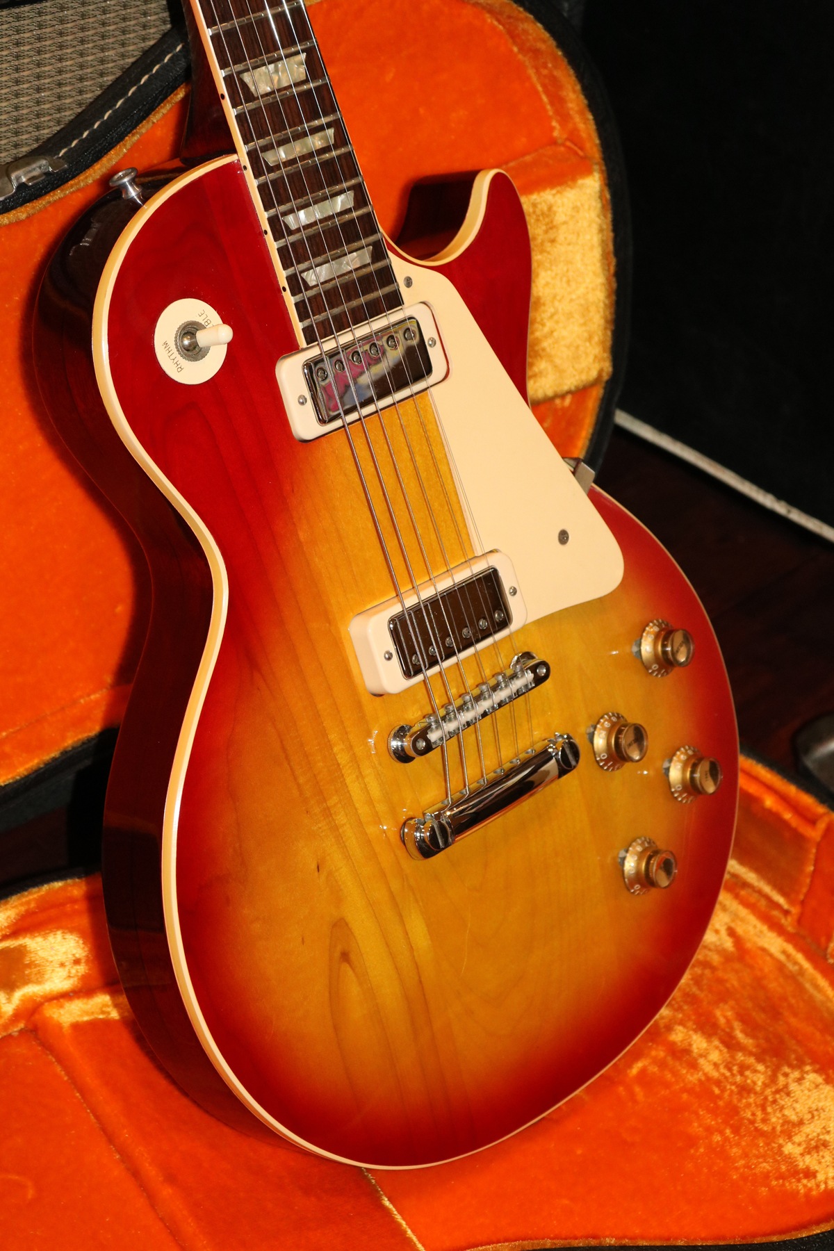 1971 Gibson Les Paul Deluxe, Nice clean example, Cherry Sunburst, Great feeling Mahogany neck, Two mini humbucking pickups, Kluson tuners, Beautiful sounding, Very resonant, Fine playing! Exceptionally fine original condition, Original hard case with Yellow lining, (SOLD)