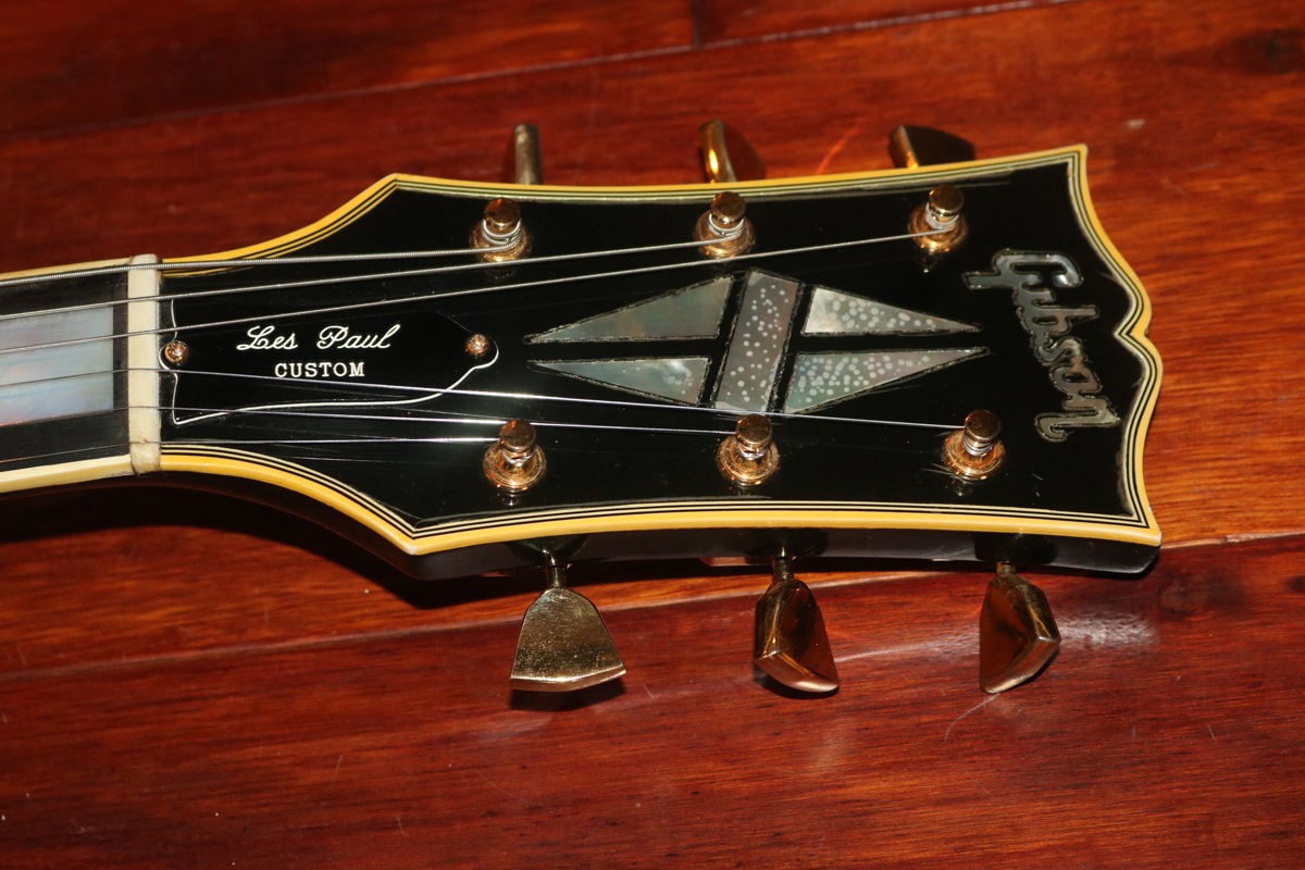 1973 Gibson Les Paul Custom, Black, Mahogany Neck, Ebony fingerboard with Pearl block inlays, Waffle back tuners, Gold hardware, Two Humbucking pickups , Nice low action, Lively instrument, EC, Original hard case with yellow lining